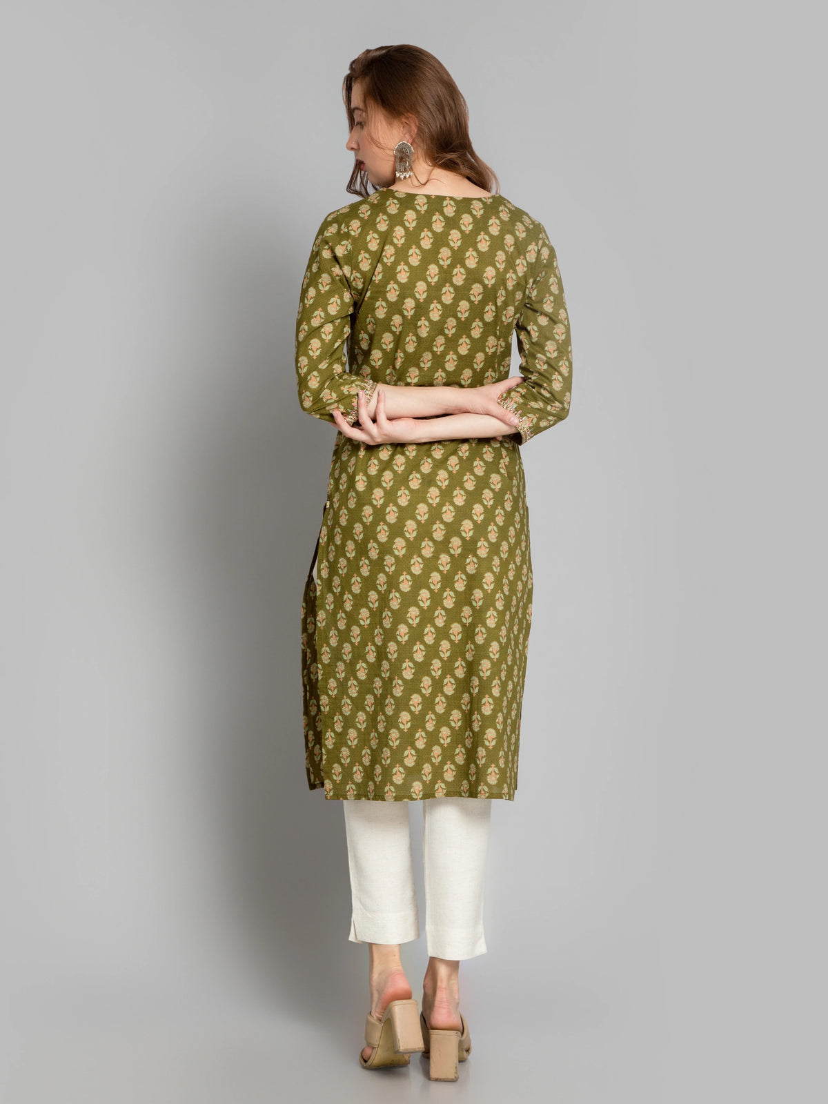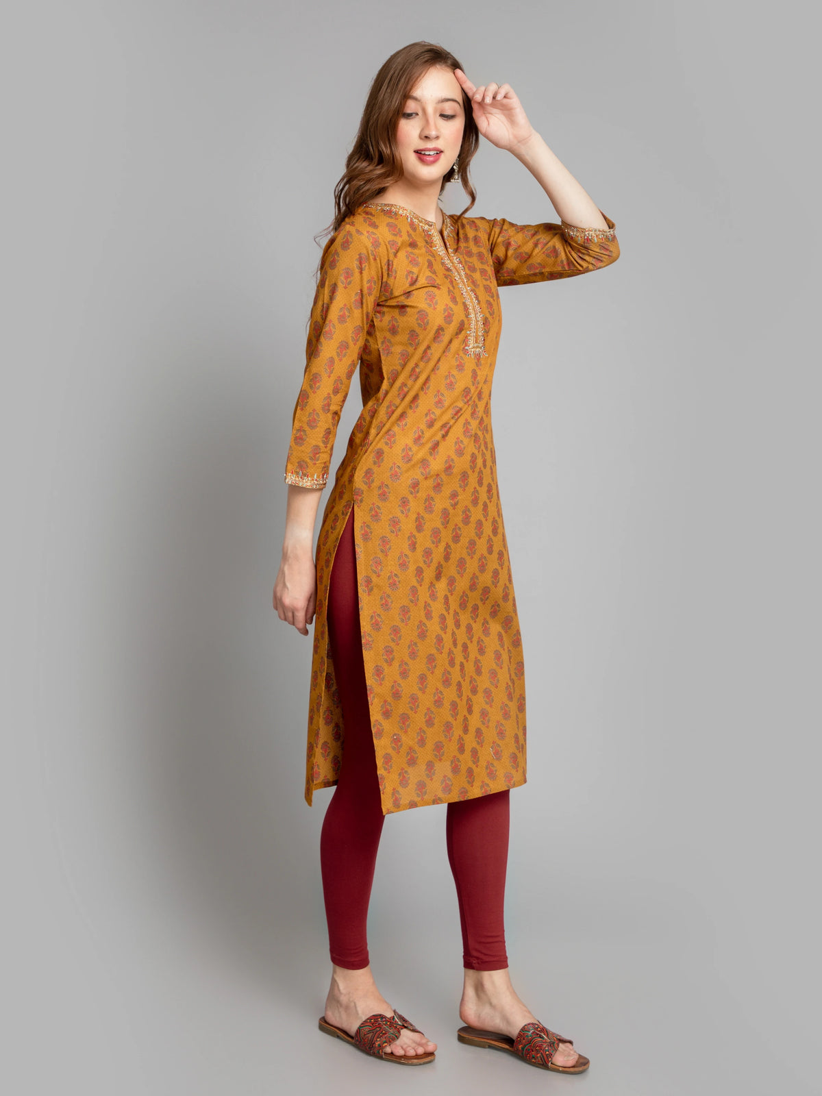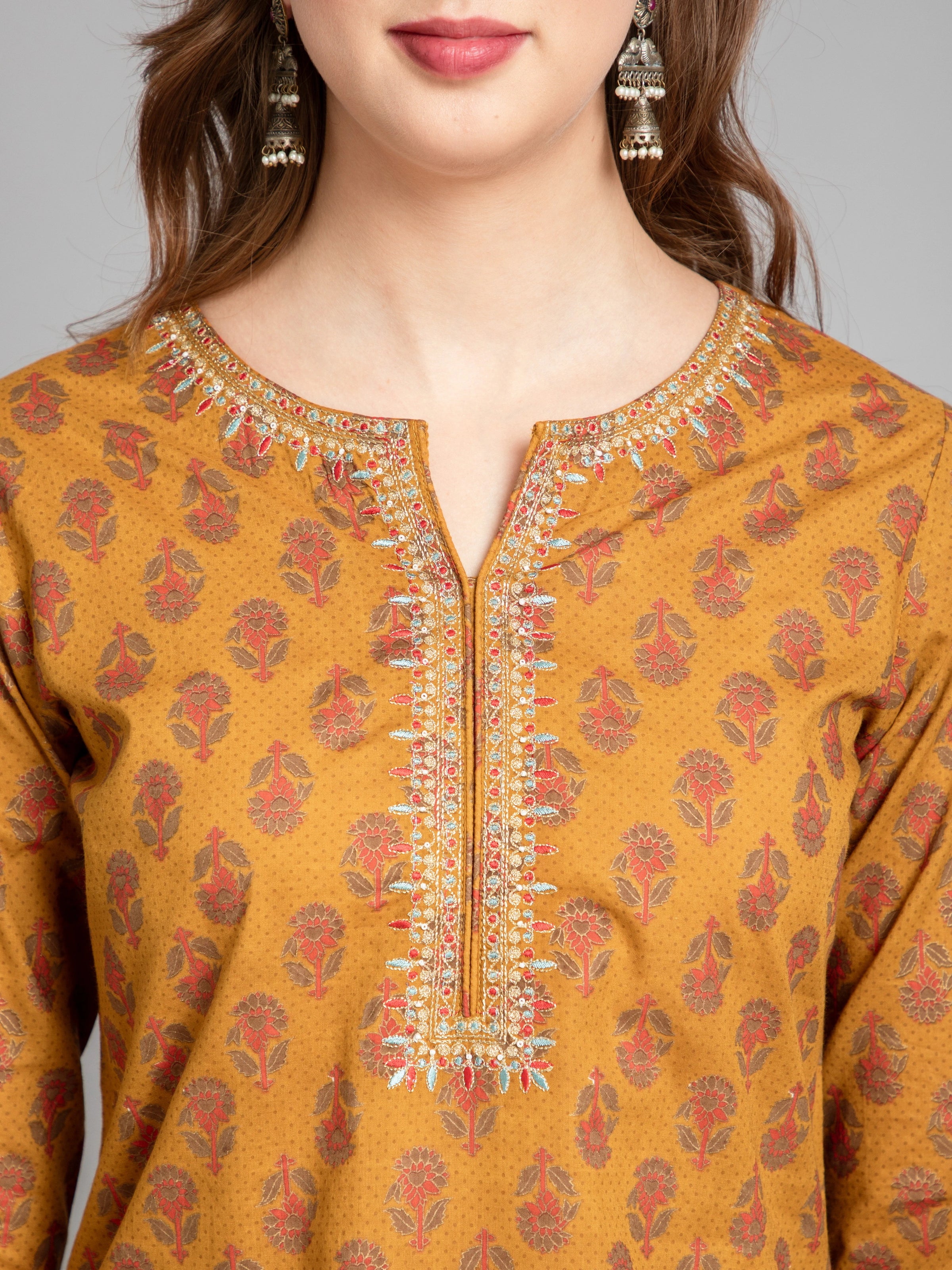 Embroidered Mul Cotton Kurti with Sanganeri Print