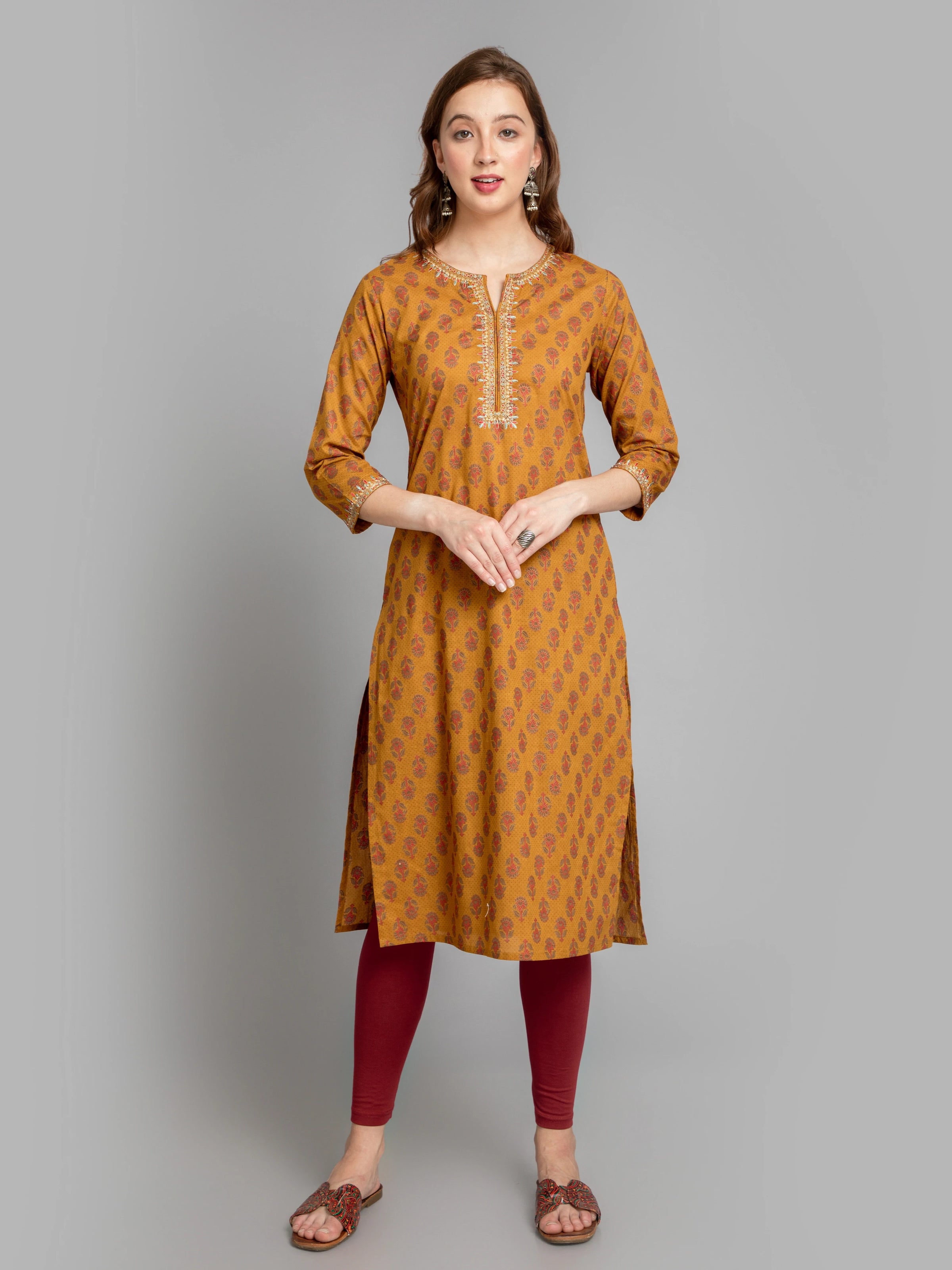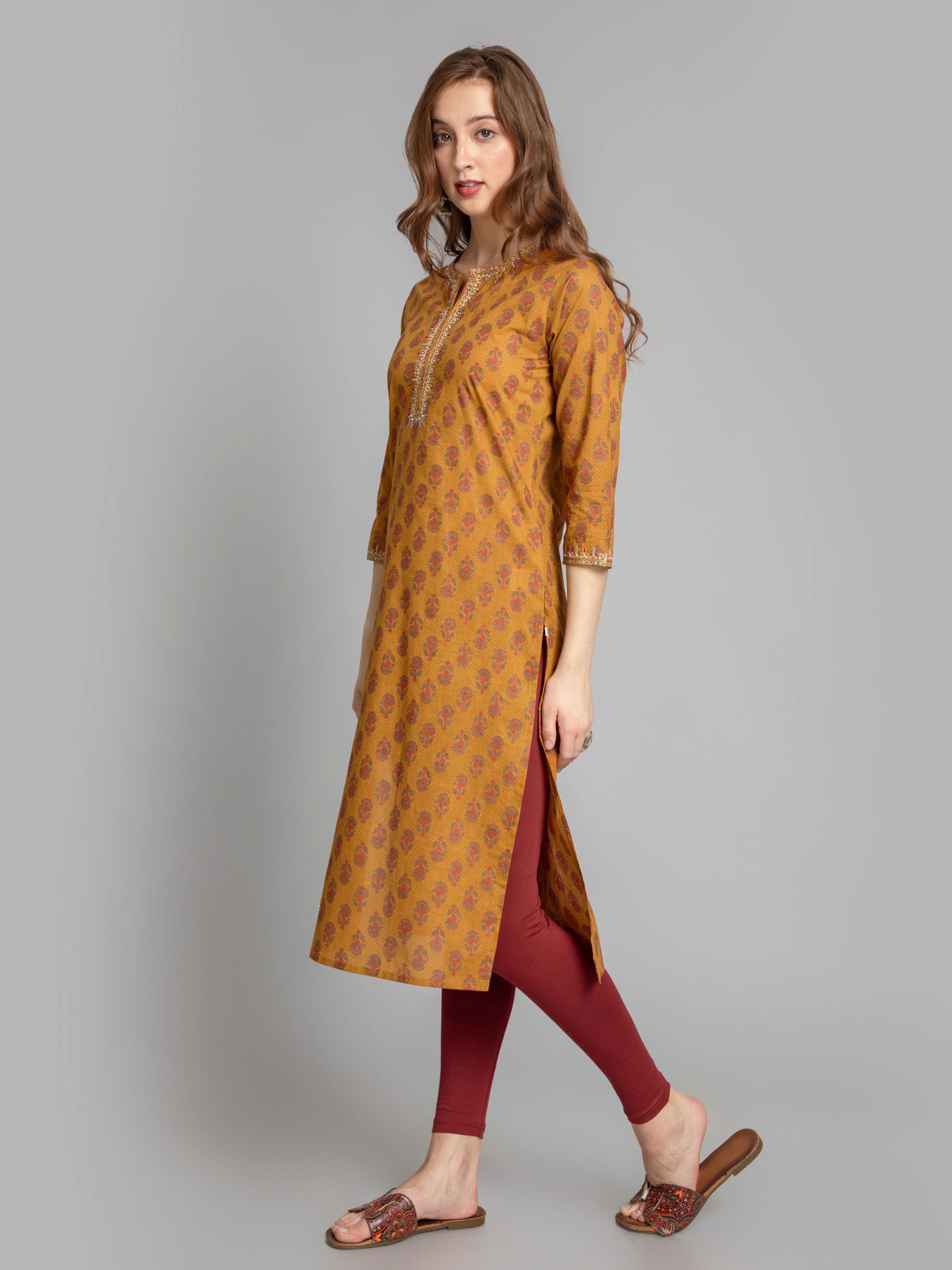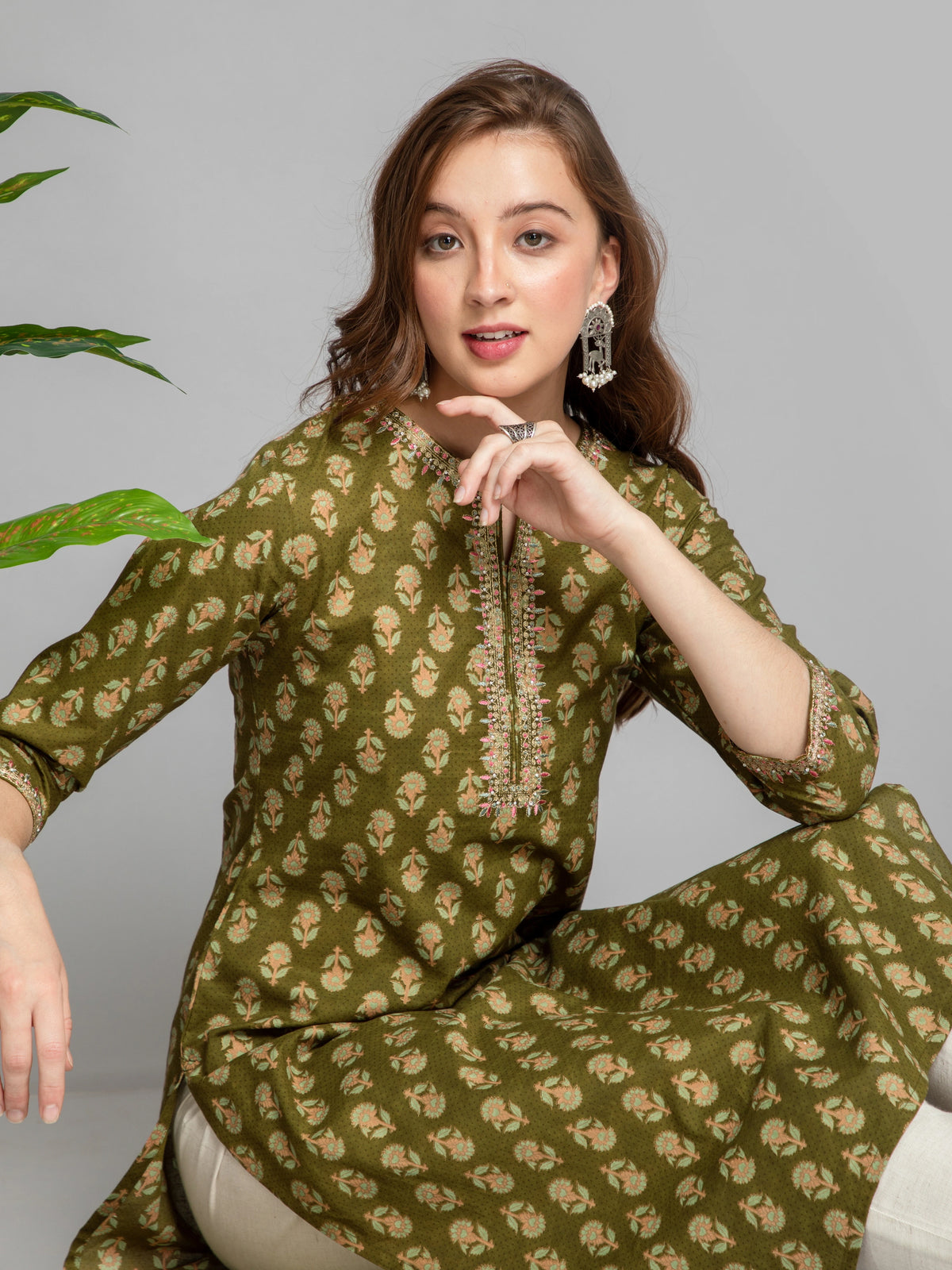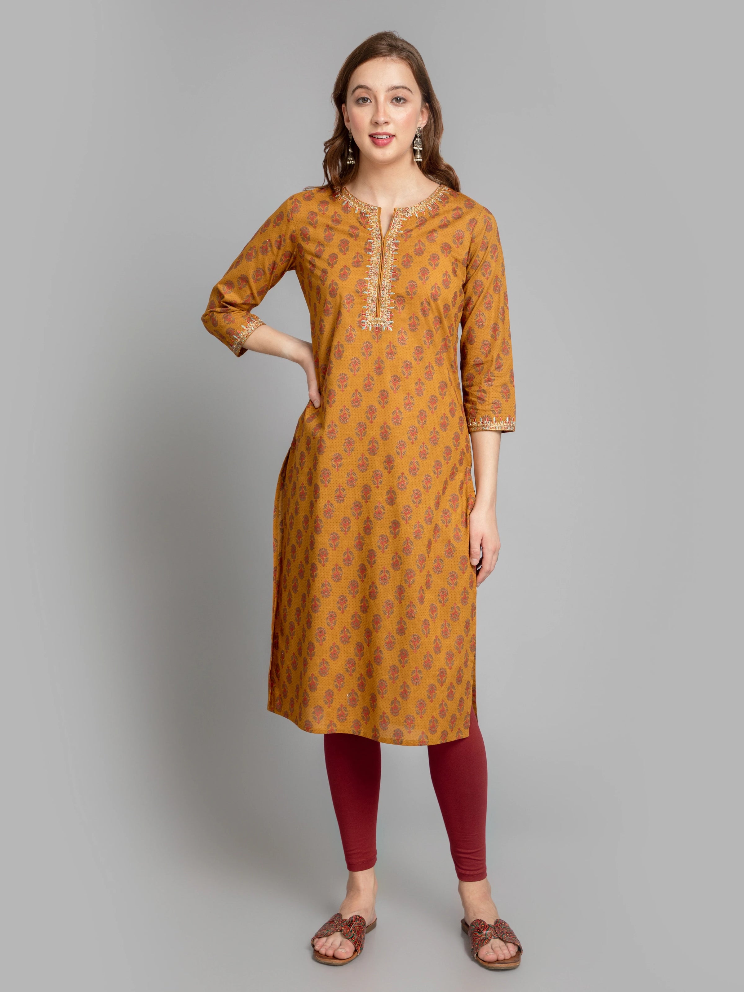 Embroidered Mul Cotton Kurti with Sanganeri Print