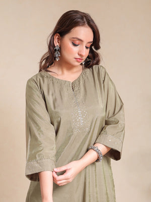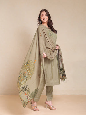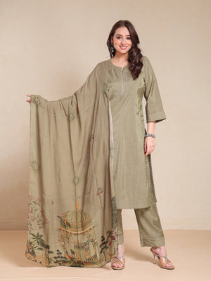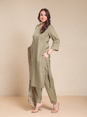 SHIMMER SILK 3PC KURTA SET WITH SEQUENCE WORK PAIRED WITH DIGITAL FLORAL PRINTED DUPATTA