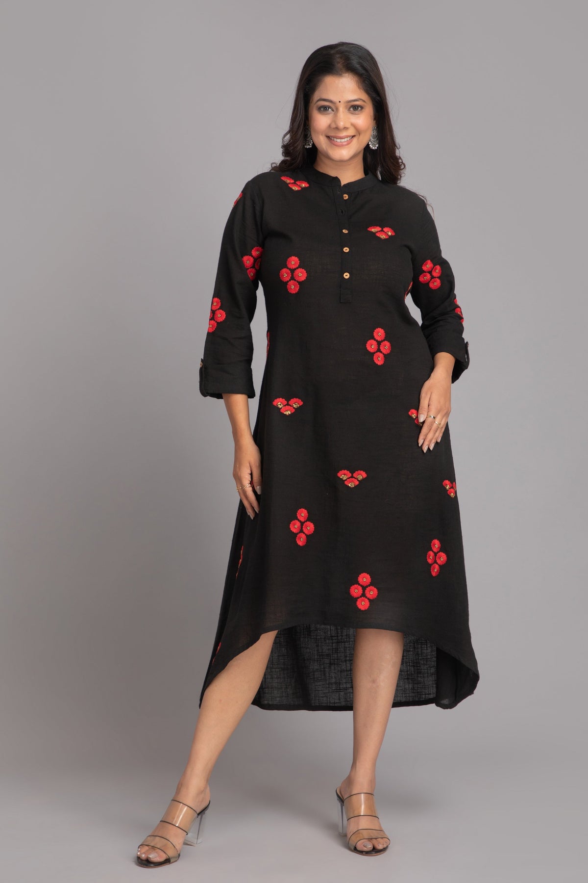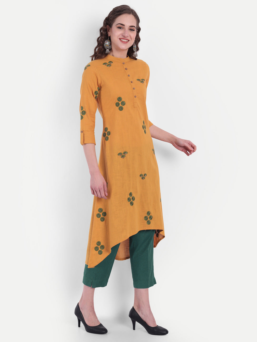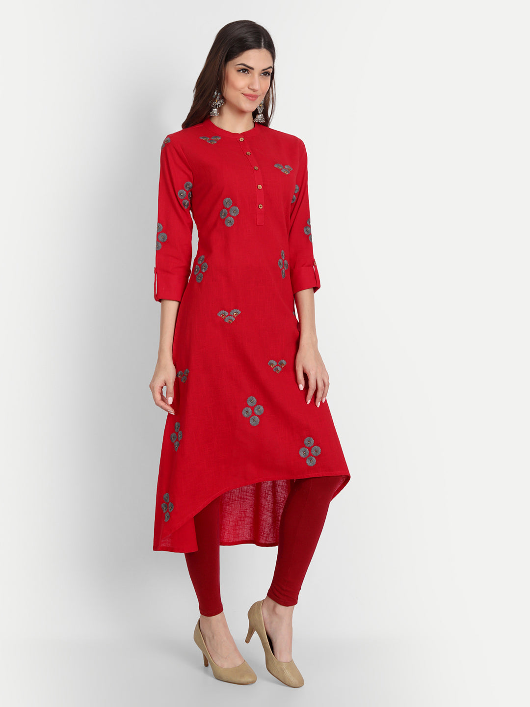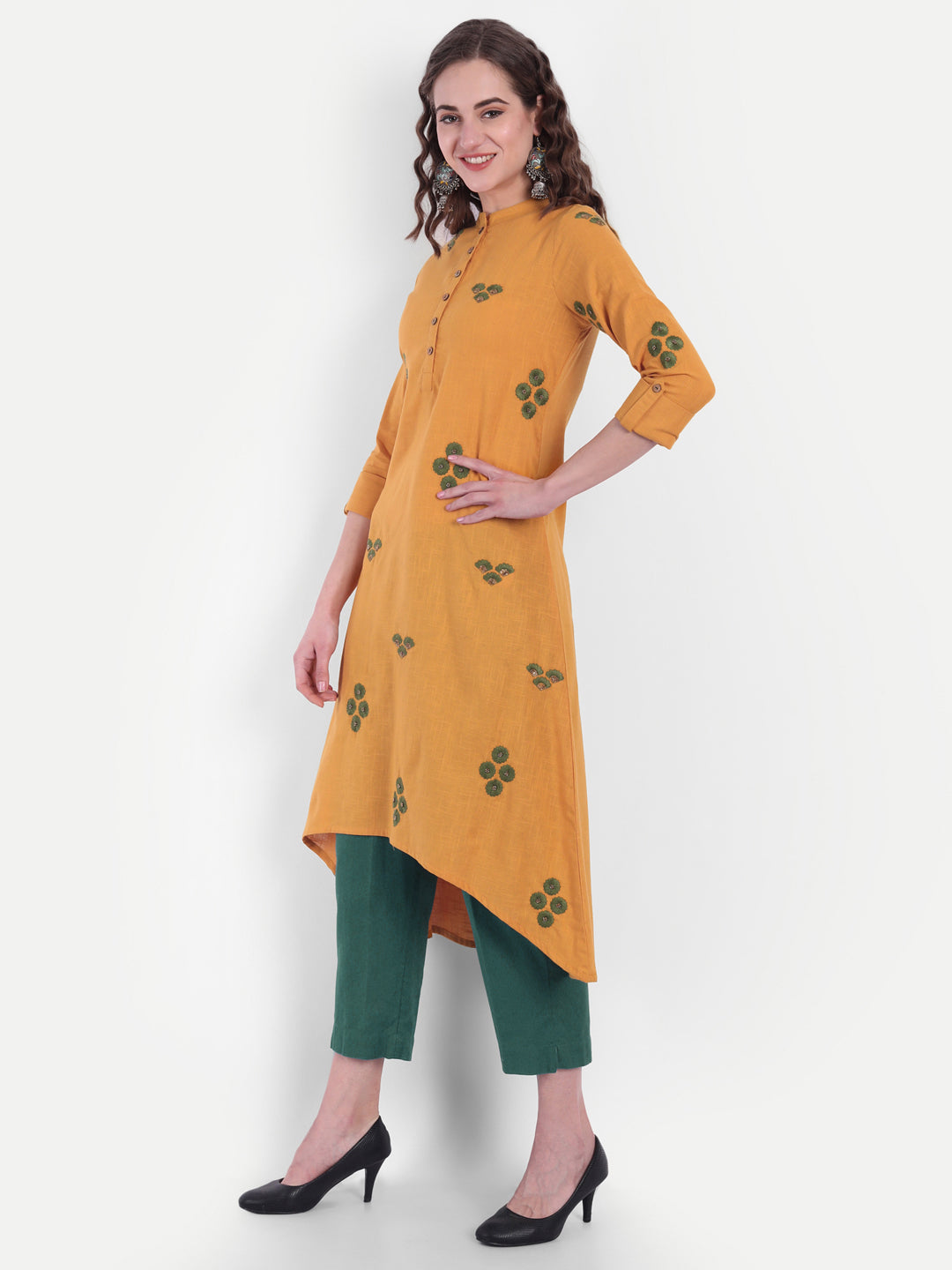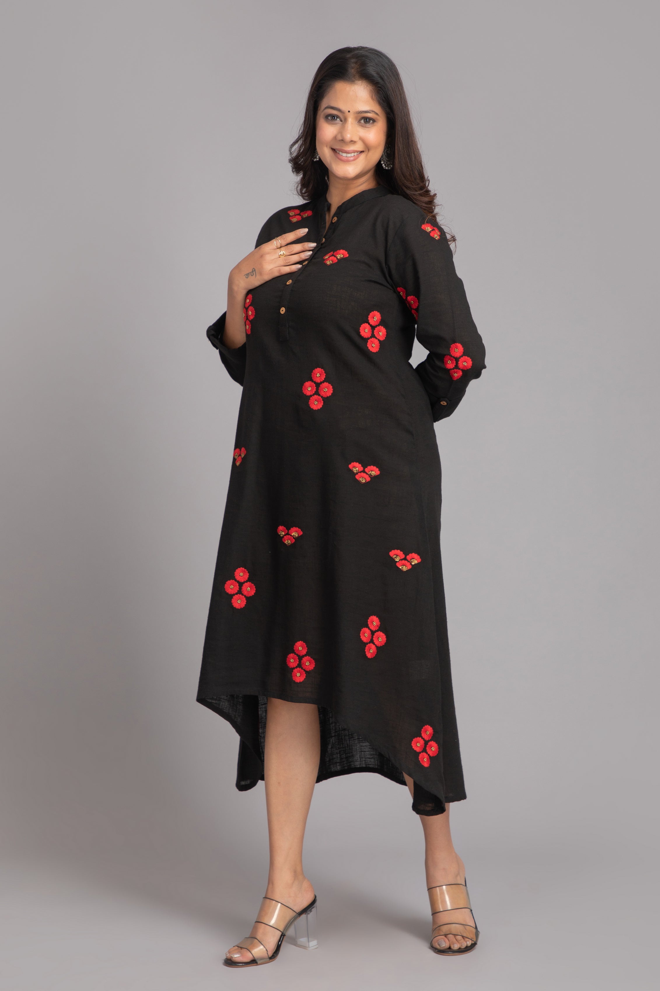 Introducing this captivating Festive Elegance: Cotton Slub Embroidered High-Low Kurti. made from fine COTTON SLUB, featuring artistic festive elegance: cotton slub embroidered high-low kurti. that adds a luxurious touch. Perfect for women who seek elegance blended with contemporary style, this ensemble is suited for all festive and casual moments. Enhance the beauty of this outfit with traditional jewelry and chic sandals to complete your ensemble. Style this elegant piece with your favorite accessories to complete the perfect look.