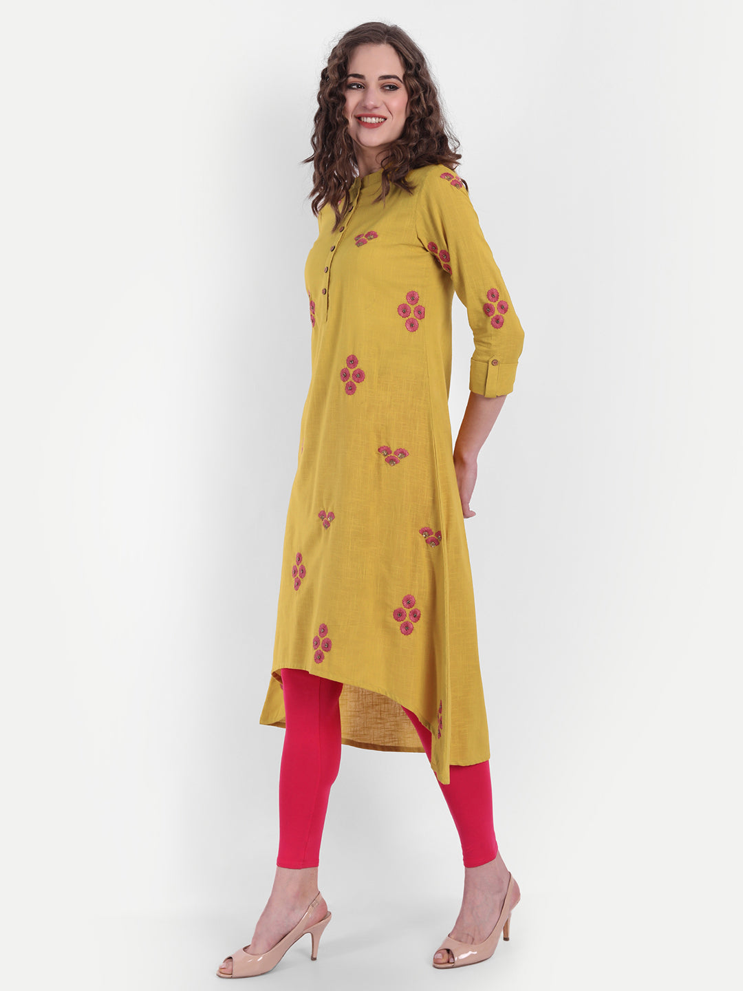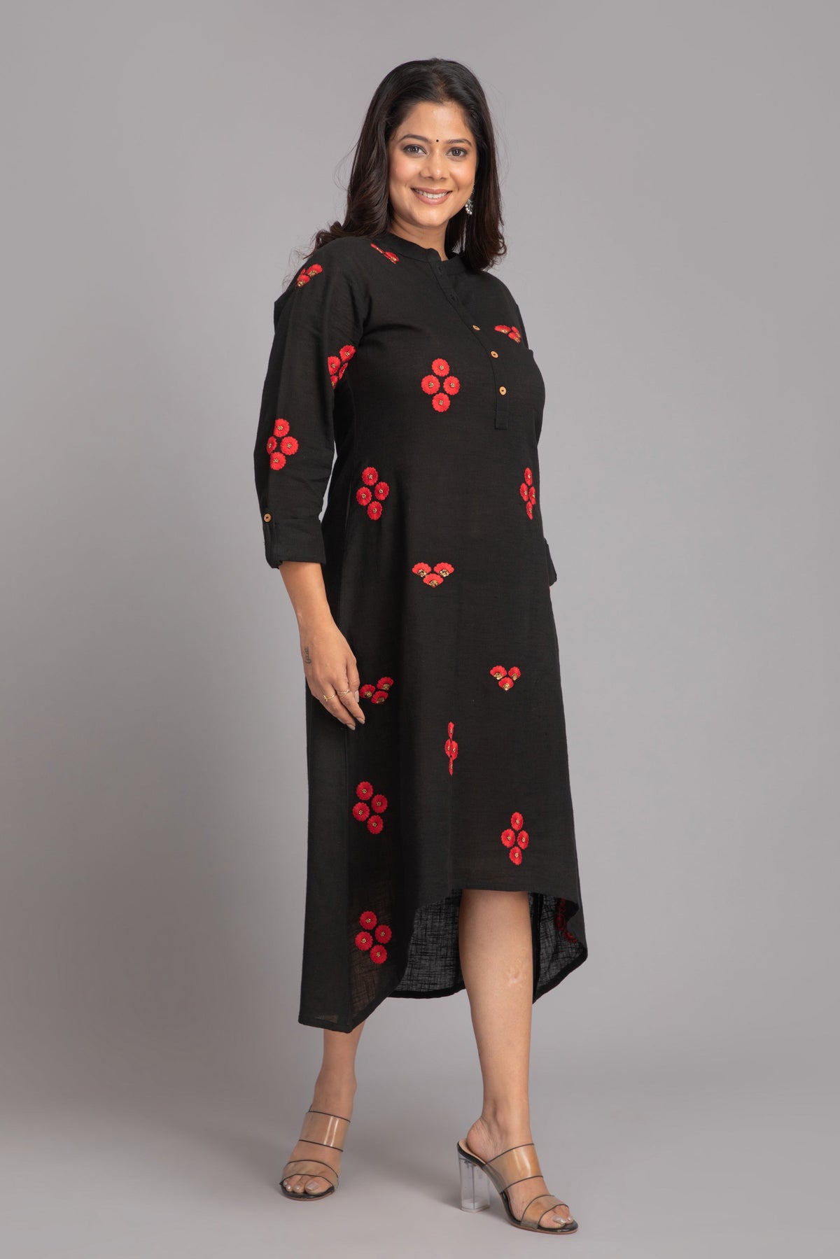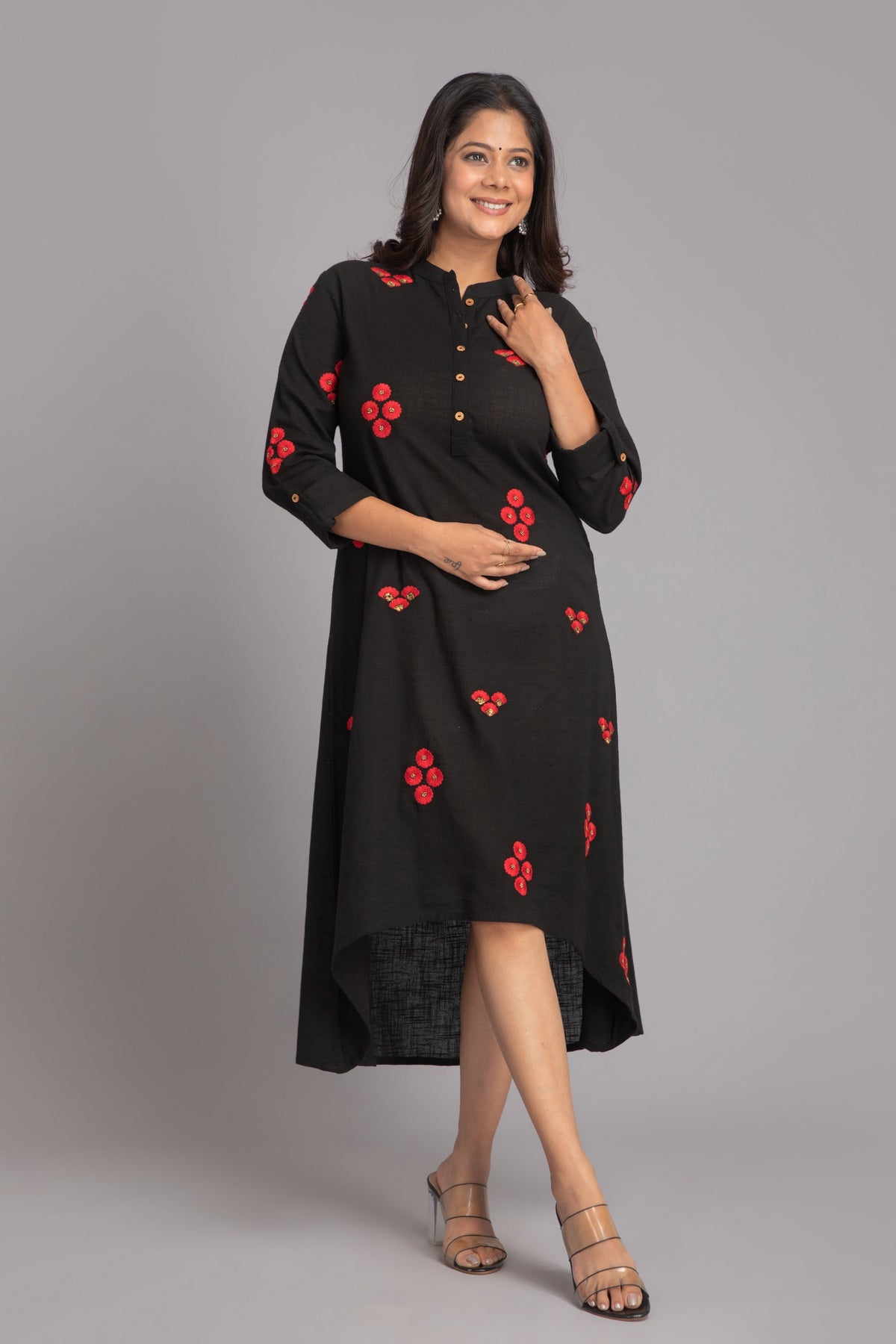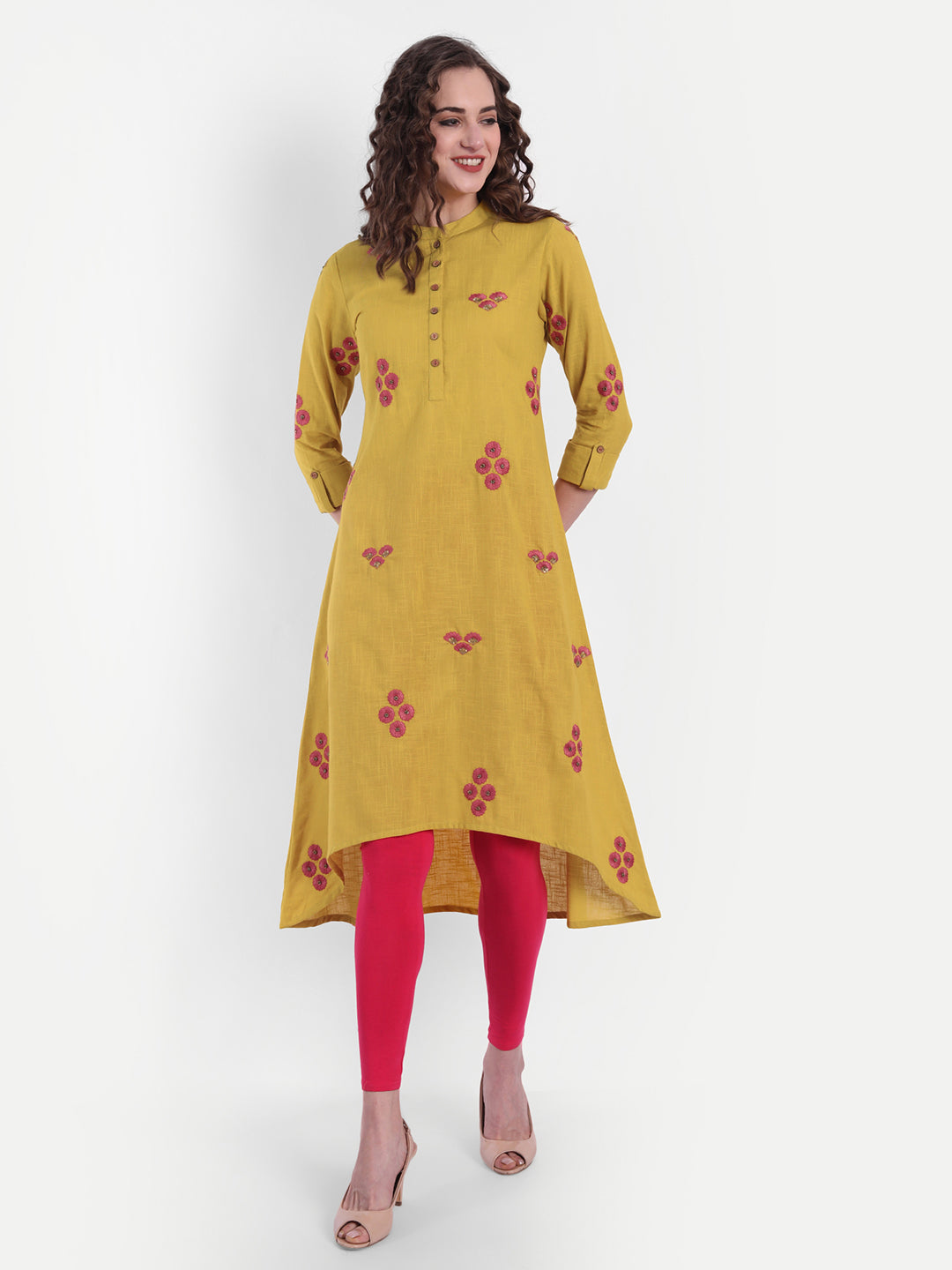 Introducing this captivating Festive Elegance: Cotton Slub Embroidered High-Low Kurti. made from fine COTTON SLUB, featuring artistic festive elegance: cotton slub embroidered high-low kurti. that adds a luxurious touch. Perfect for women who seek elegance blended with contemporary style, this ensemble is suited for all festive and casual moments. Enhance the beauty of this outfit with traditional jewelry and chic sandals to complete your ensemble. Style this elegant piece with your favorite accessories to complete the perfect look.