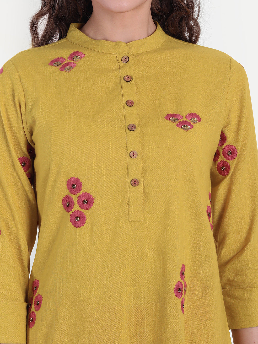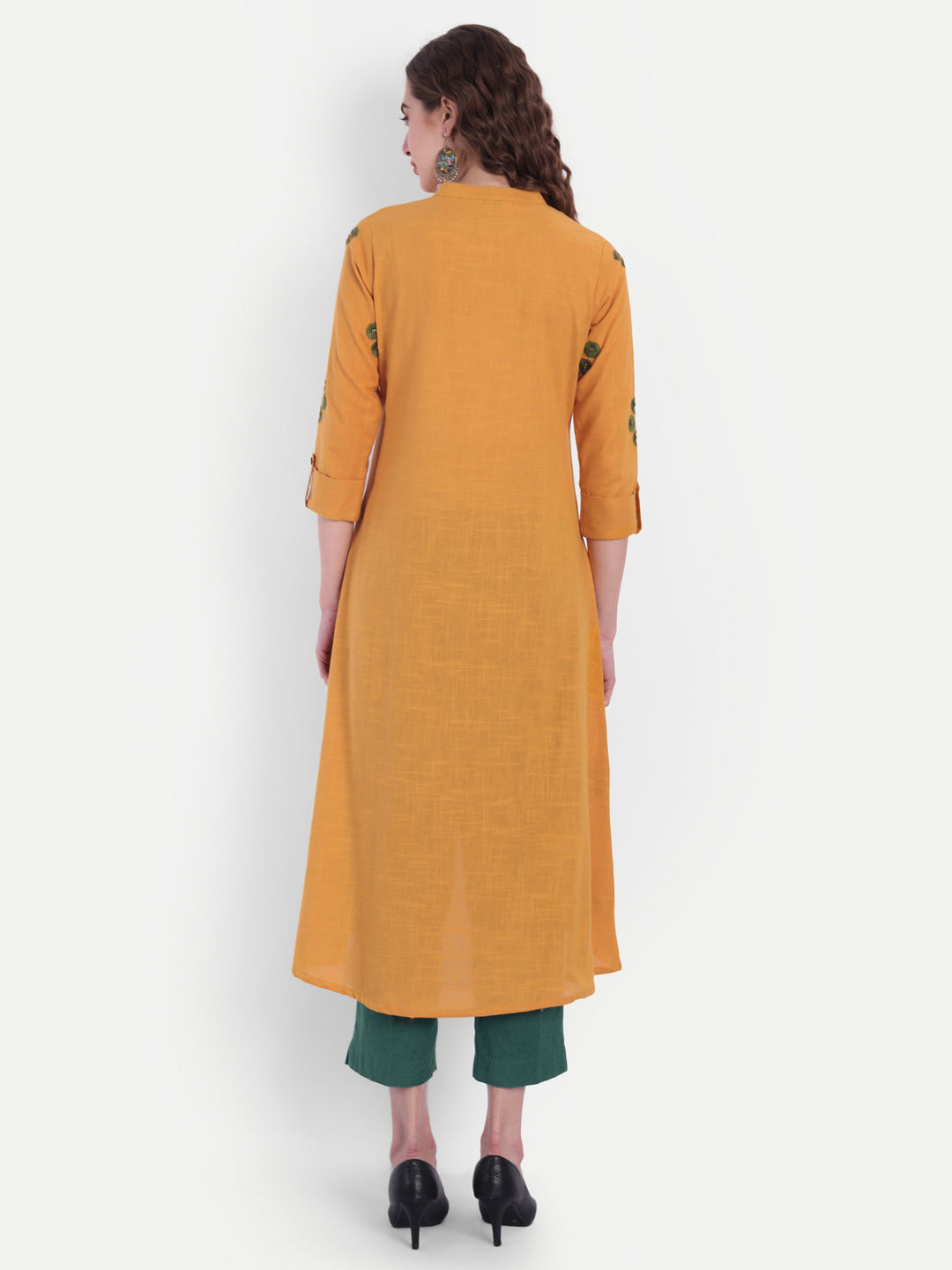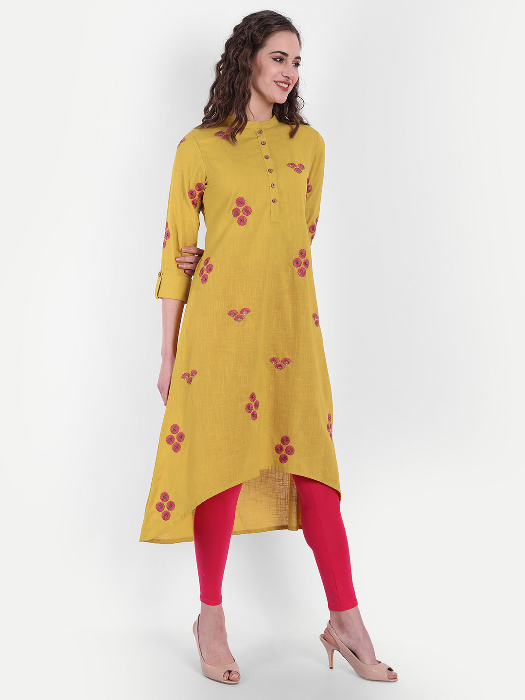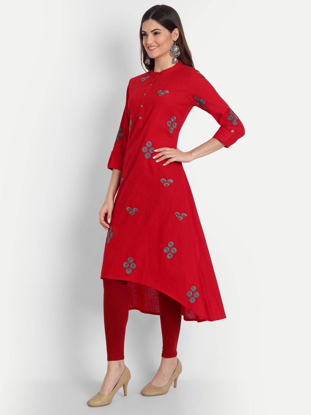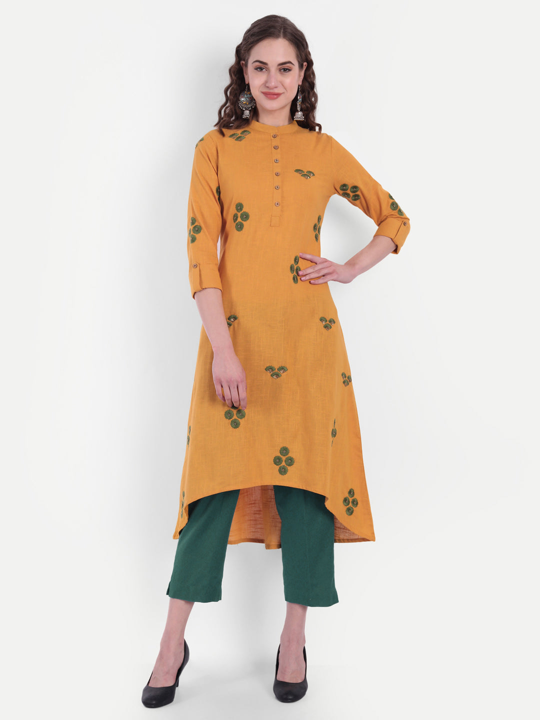 Introducing this captivating Festive Elegance: Cotton Slub Embroidered High-Low Kurti. made from fine COTTON SLUB, featuring artistic festive elegance: cotton slub embroidered high-low kurti. that adds a luxurious touch. Perfect for women who seek elegance blended with contemporary style, this ensemble is suited for all festive and casual moments. Enhance the beauty of this outfit with traditional jewelry and chic sandals to complete your ensemble. Style this elegant piece with your favorite accessories to complete the perfect look.