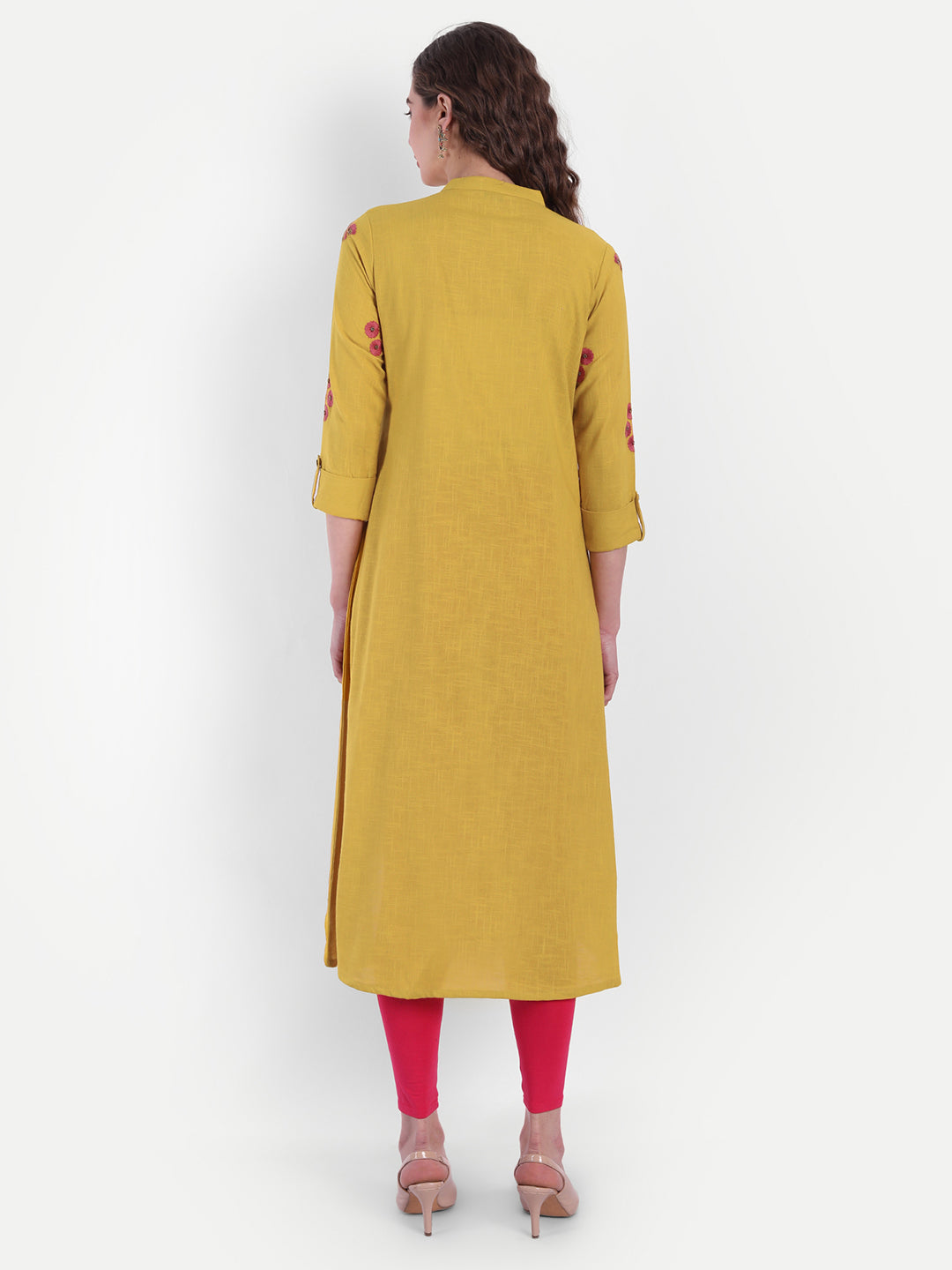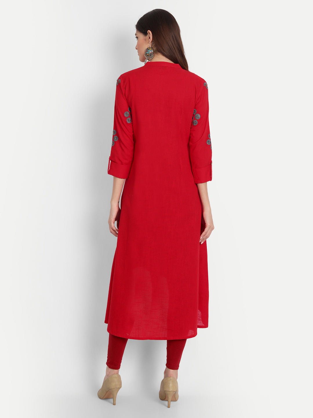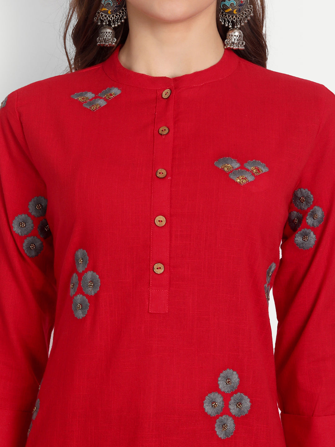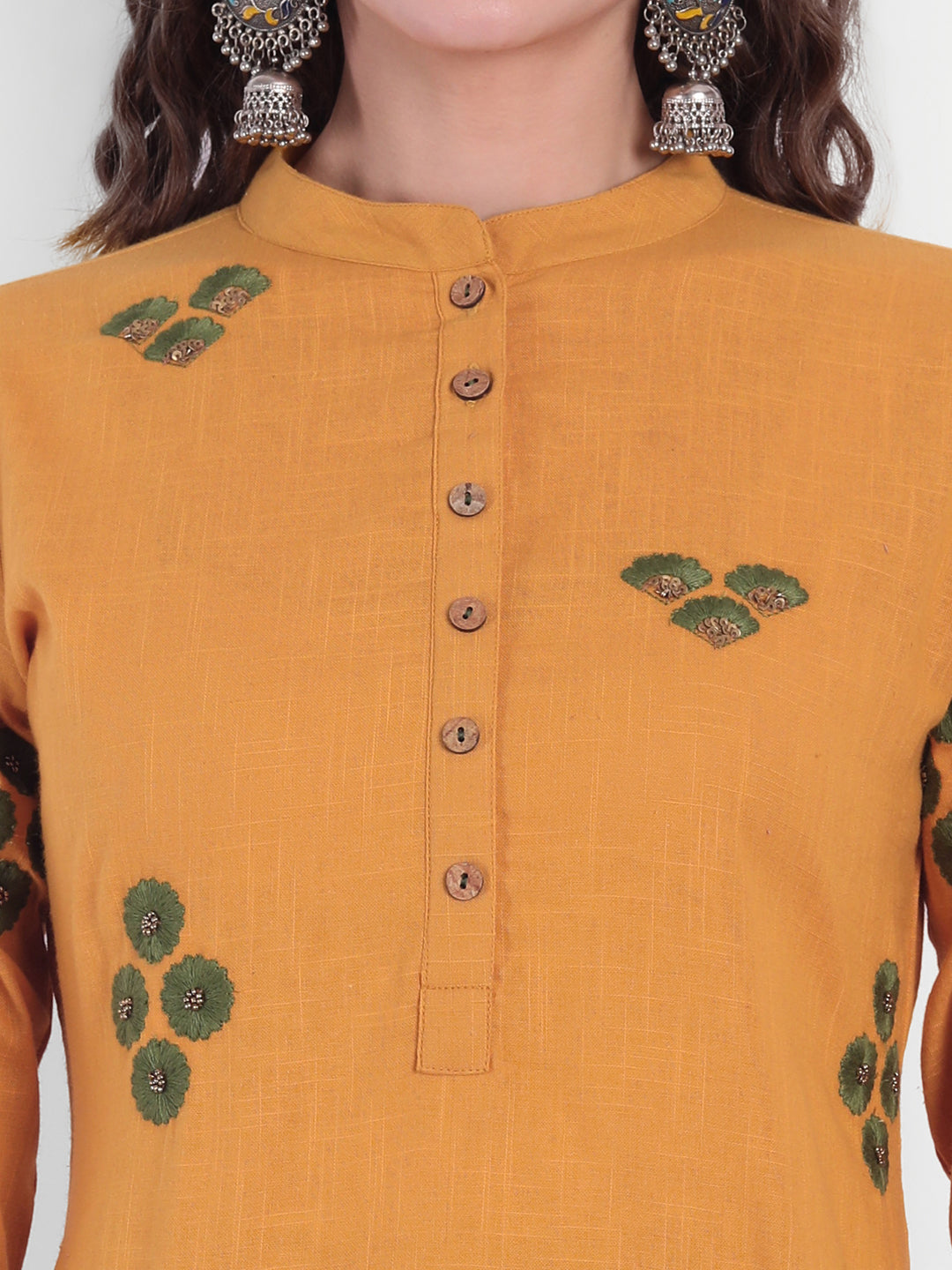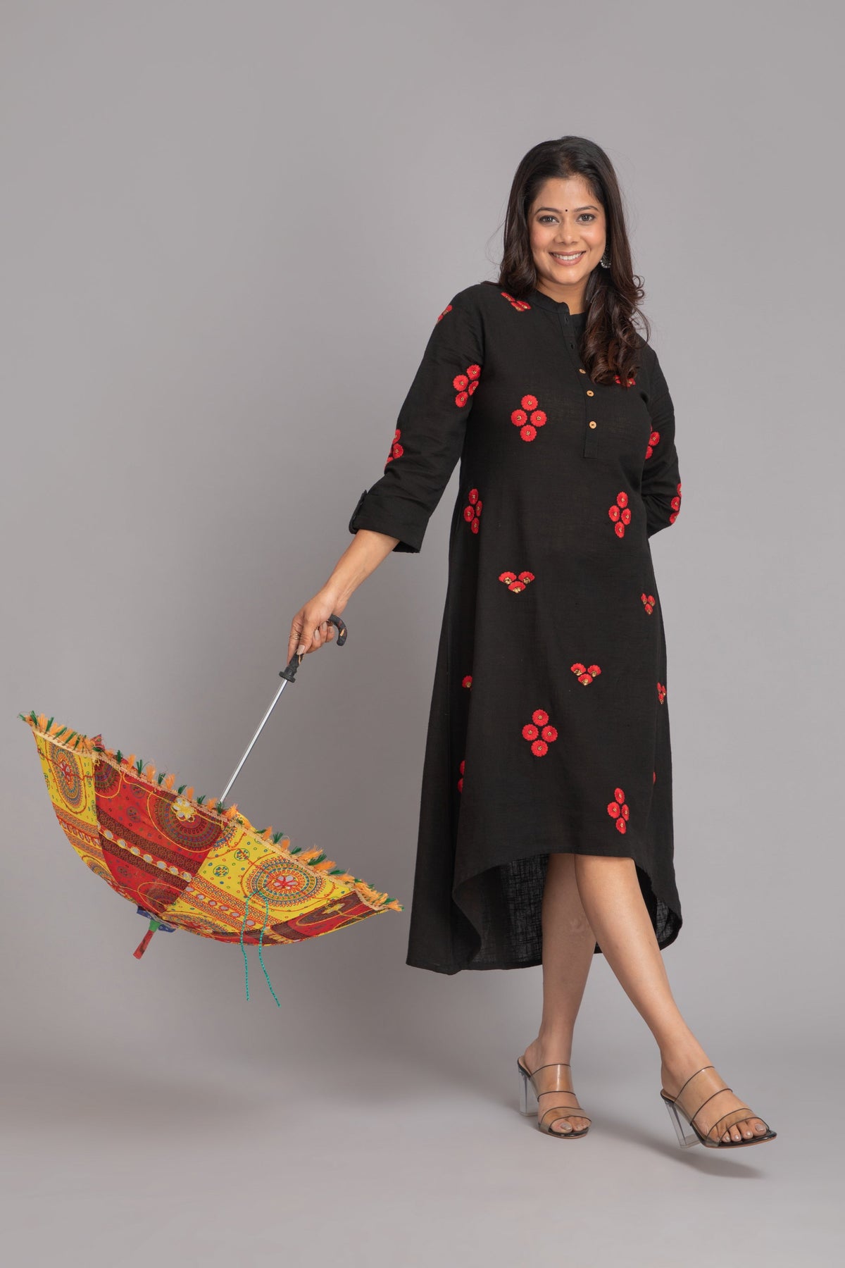 Introducing this captivating Festive Elegance: Cotton Slub Embroidered High-Low Kurti. made from fine COTTON SLUB, featuring artistic festive elegance: cotton slub embroidered high-low kurti. that adds a luxurious touch. Perfect for women who seek elegance blended with contemporary style, this ensemble is suited for all festive and casual moments. Enhance the beauty of this outfit with traditional jewelry and chic sandals to complete your ensemble. Style this elegant piece with your favorite accessories to complete the perfect look.