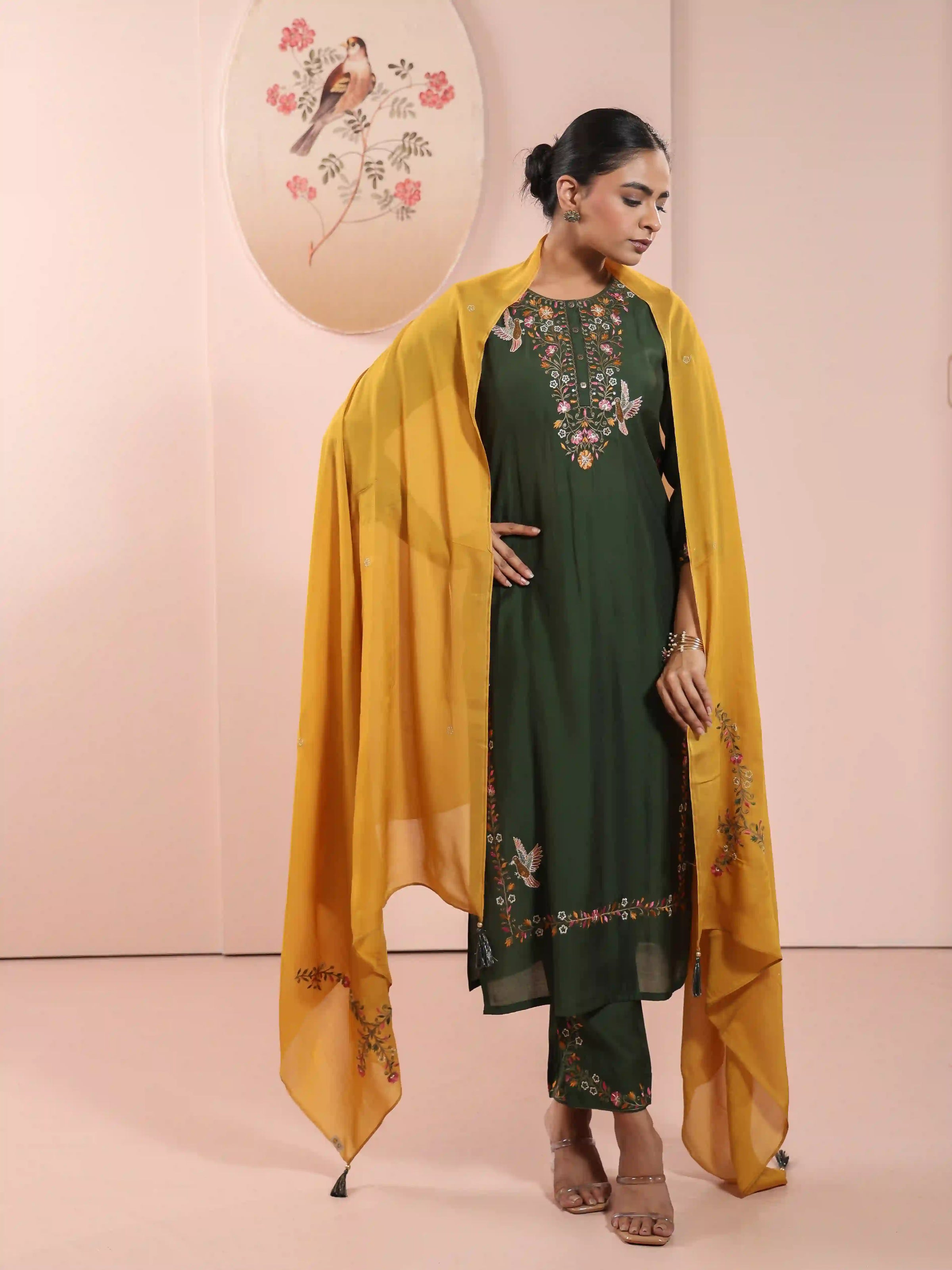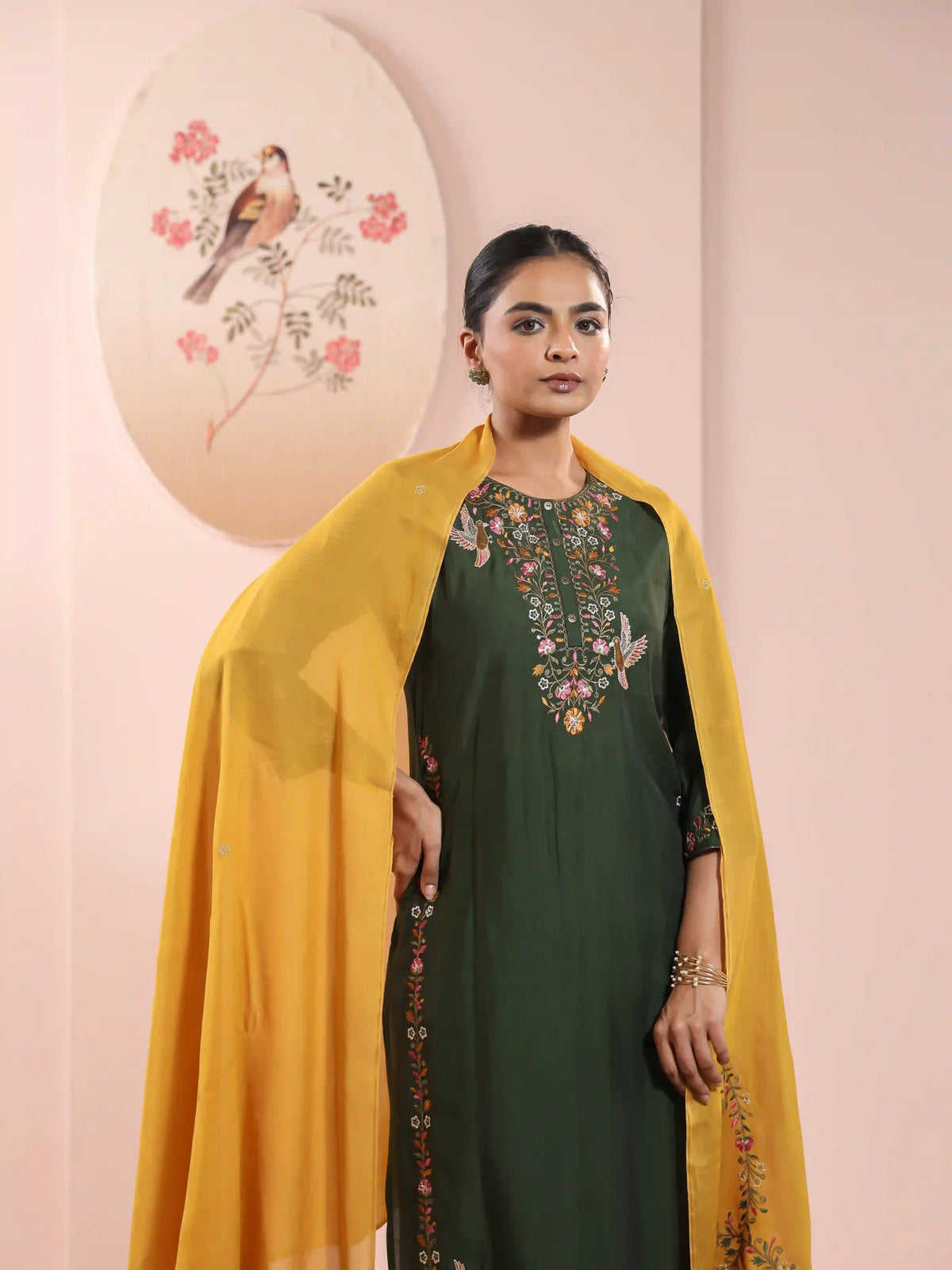 Women Green silk-base-beautiful-embroidery-3pc-kurta-set-with-sequence-details