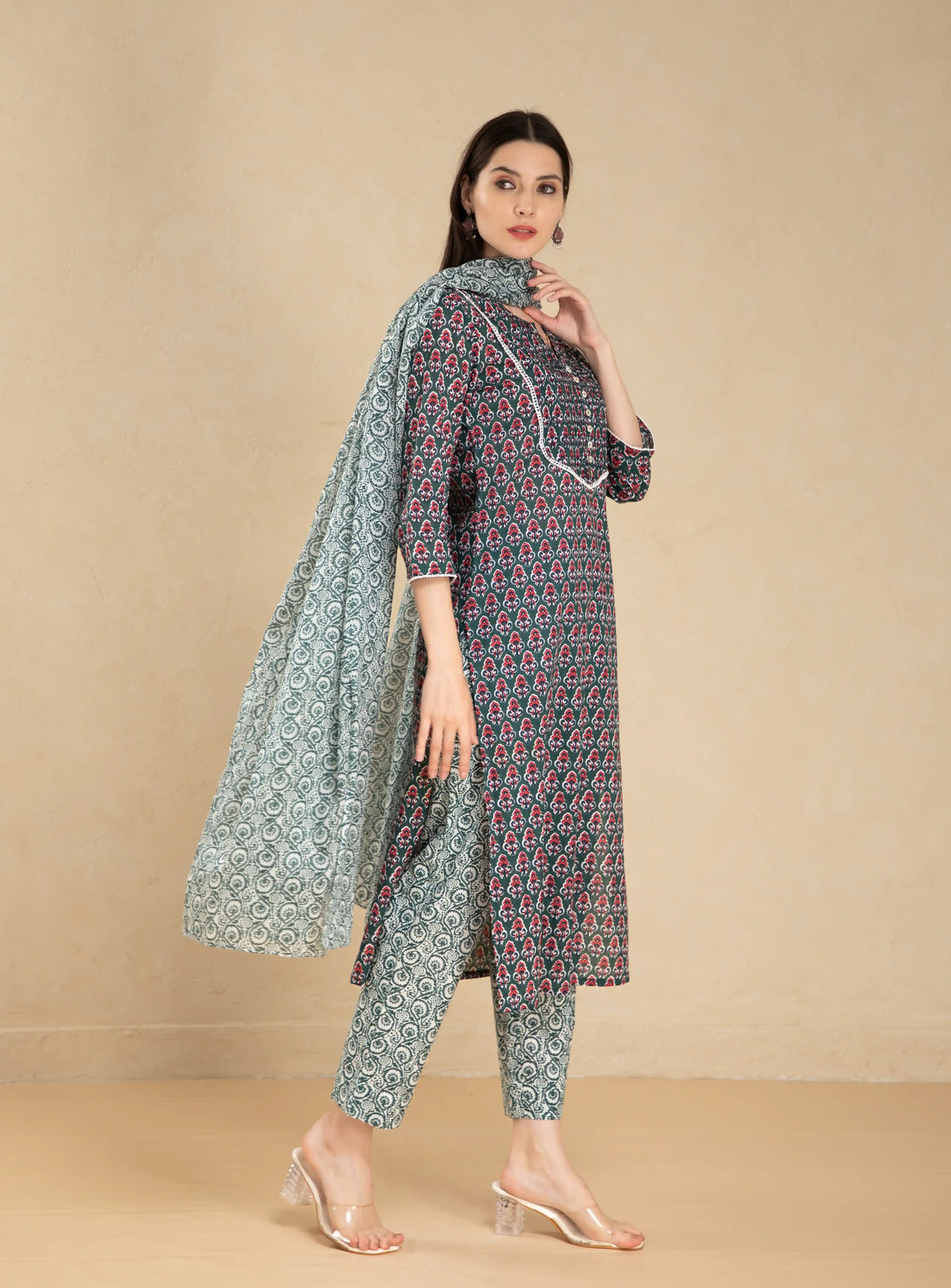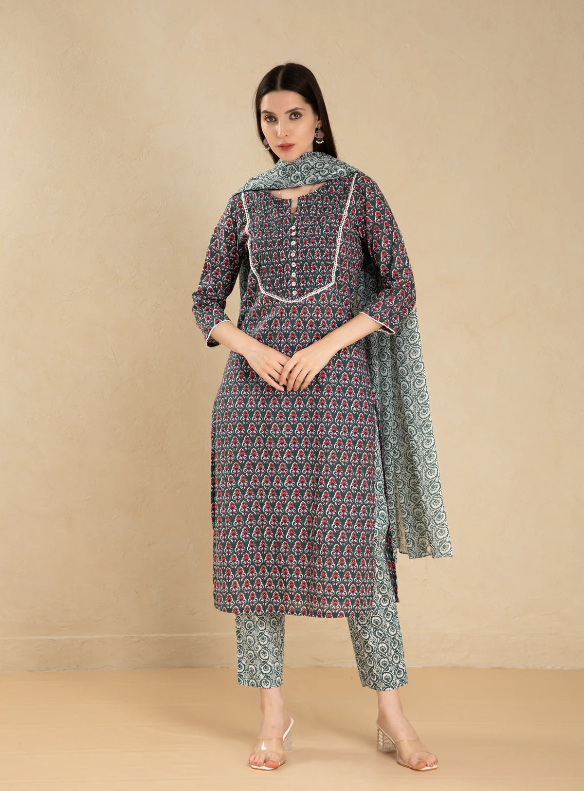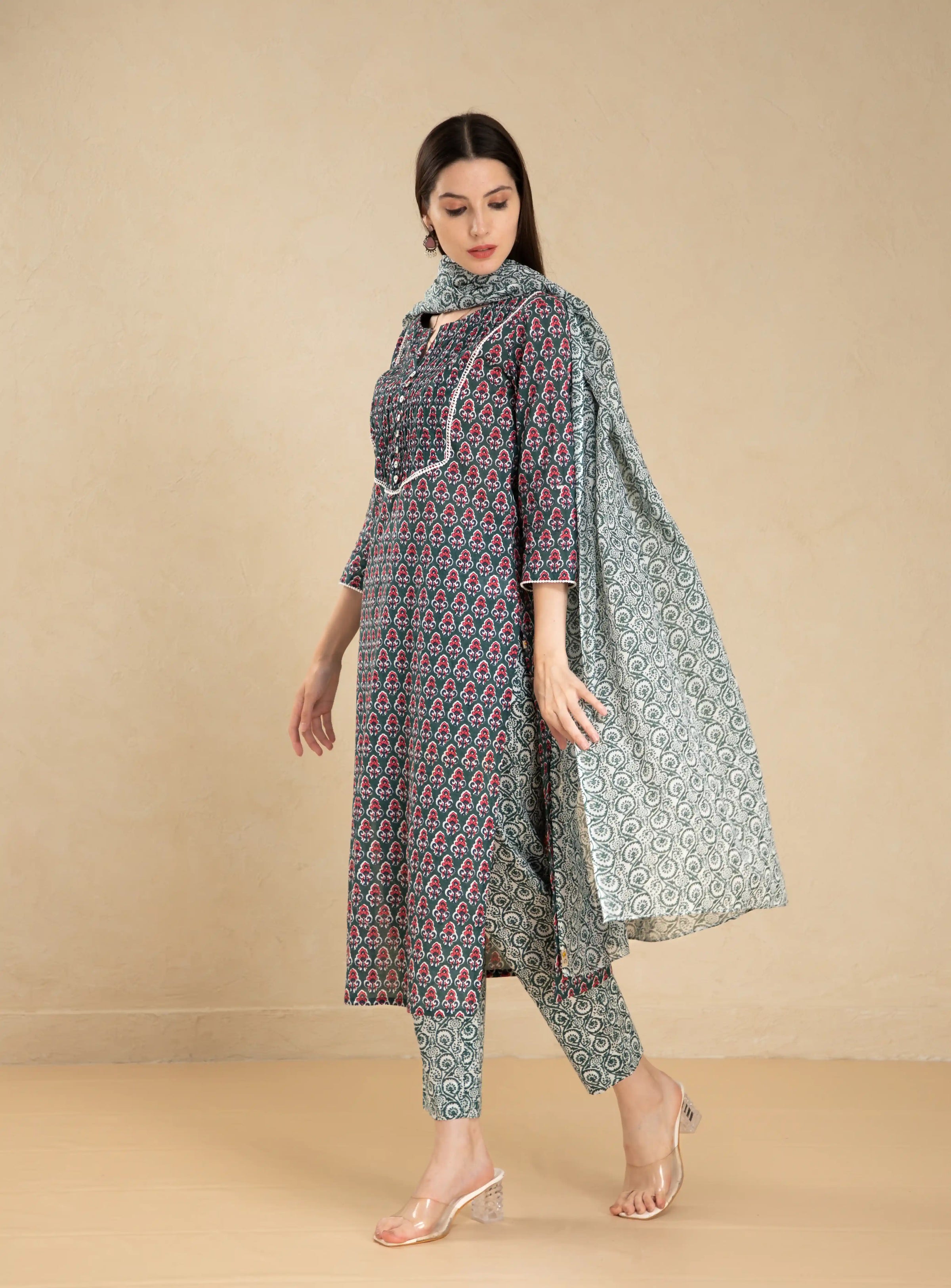 Women Sunflower mul-cotton-3pc-kurta-set-with-pintuck-lace-details