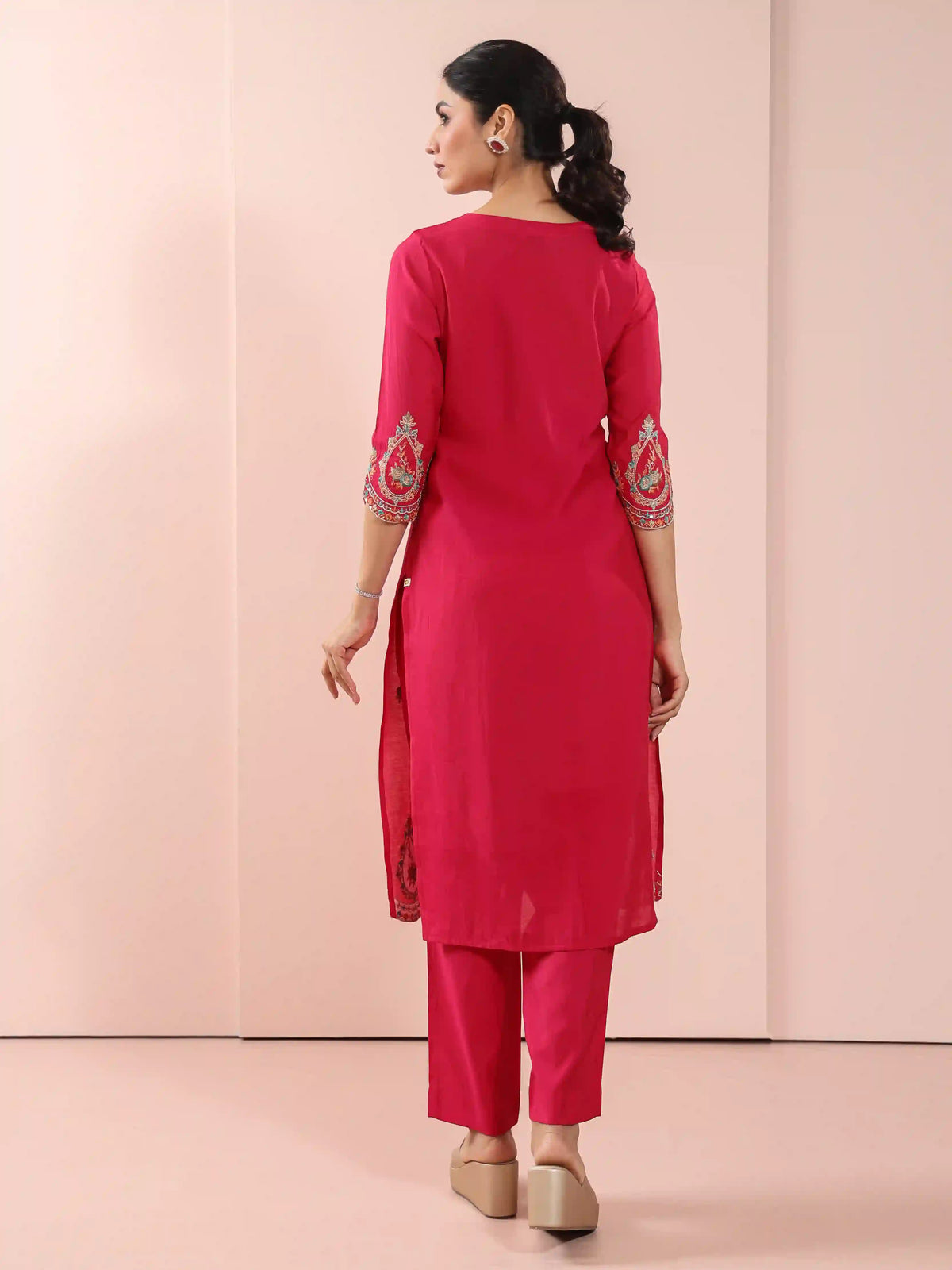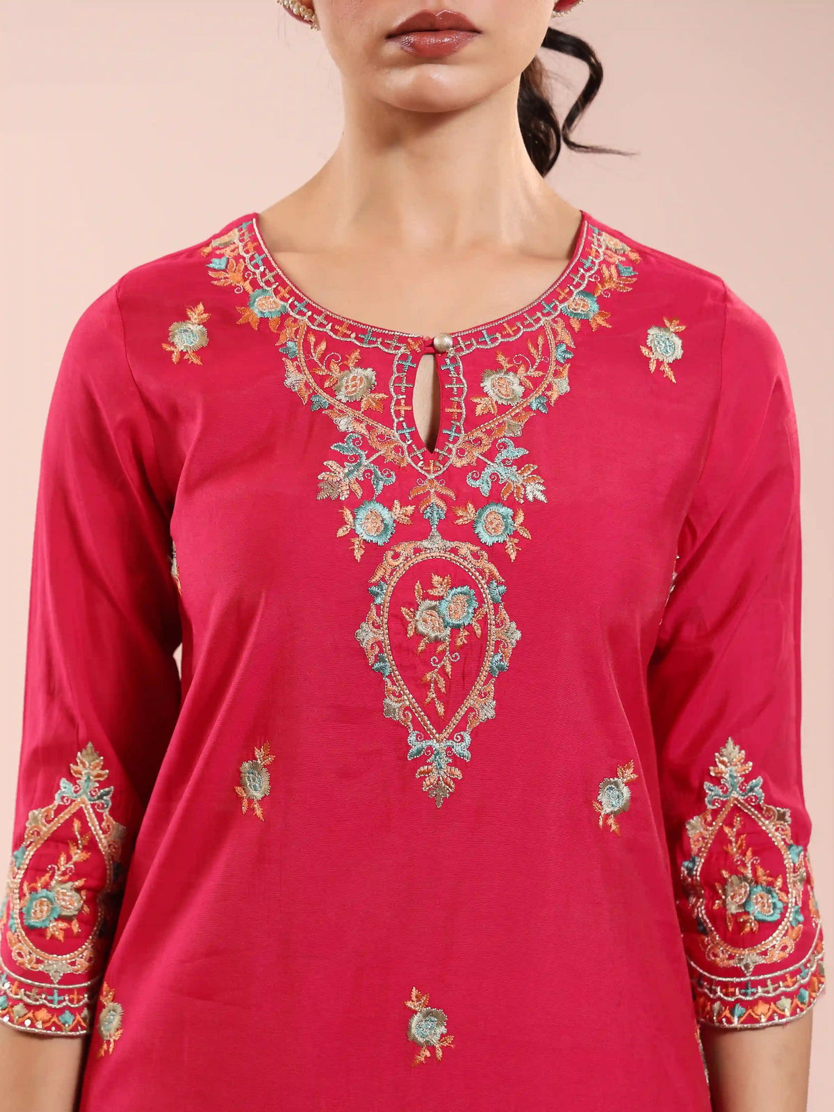 Women Virtual Pink 3pc-chikankari-embroidery-kurta-set